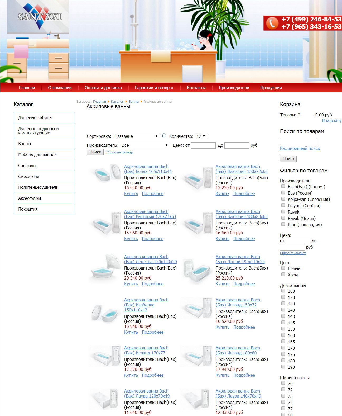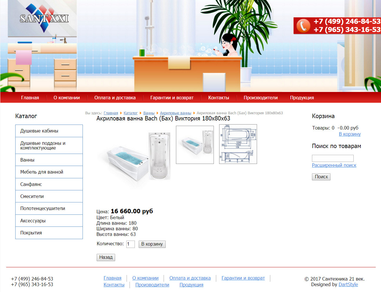 Sant21 - небольшой интернет-магазин сантехники, построенный на платформе Joomla с помощью модуля JoomShopping.